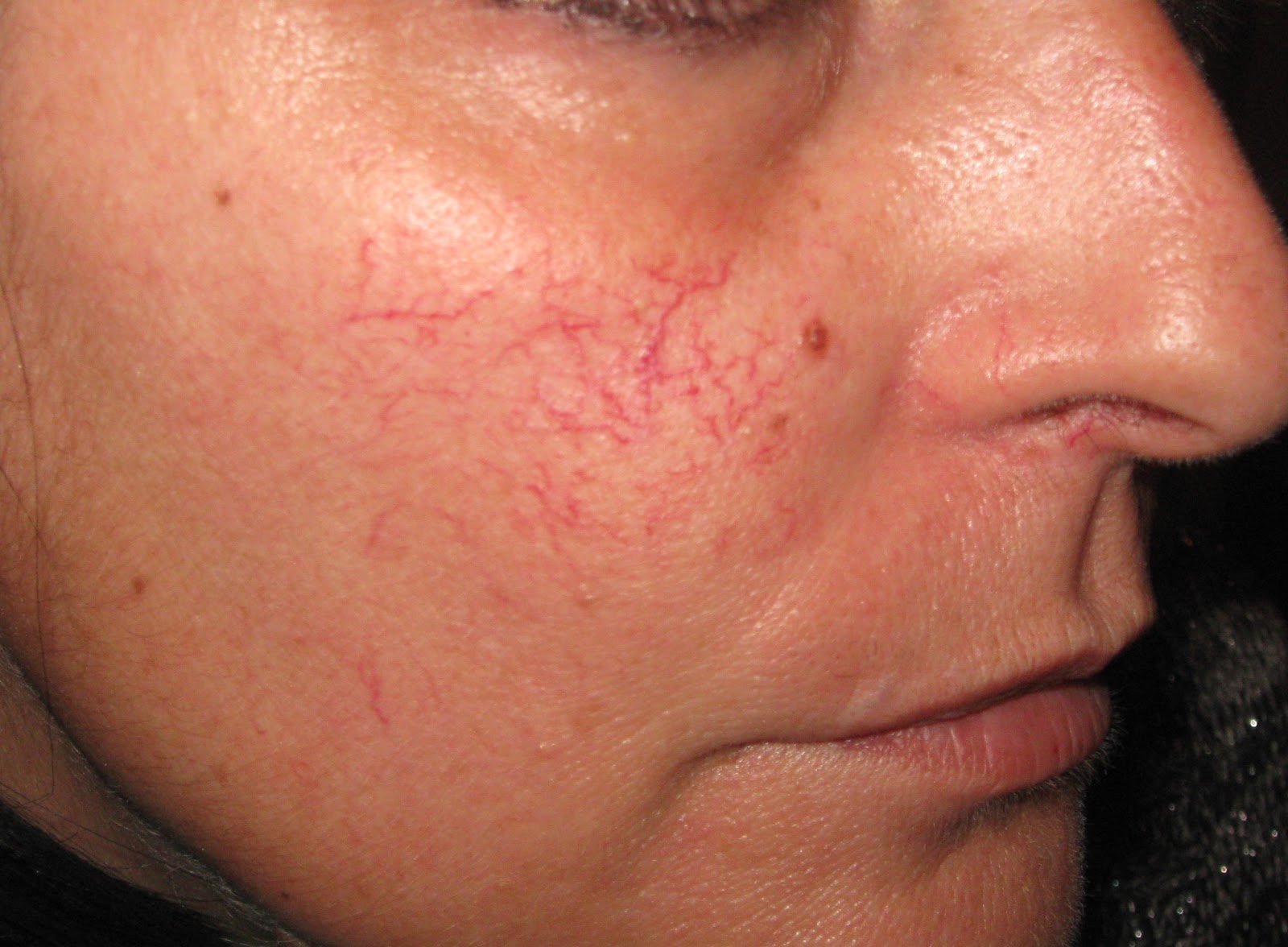 како дијагноза на ова црвенило, односно пукнати капилари - Rosacea што најчесто ги погодува нежните руси особи и тие со крвна група Rh+A и искрено речено освен со метод на електрокоагулација овие капилари не можат да се остранат ( со многу ултра тенка игла се навлегува во капиларот и се термо коагулира крвта и така како згрутчена крв ќе во тек на време ќе исчезне) ...