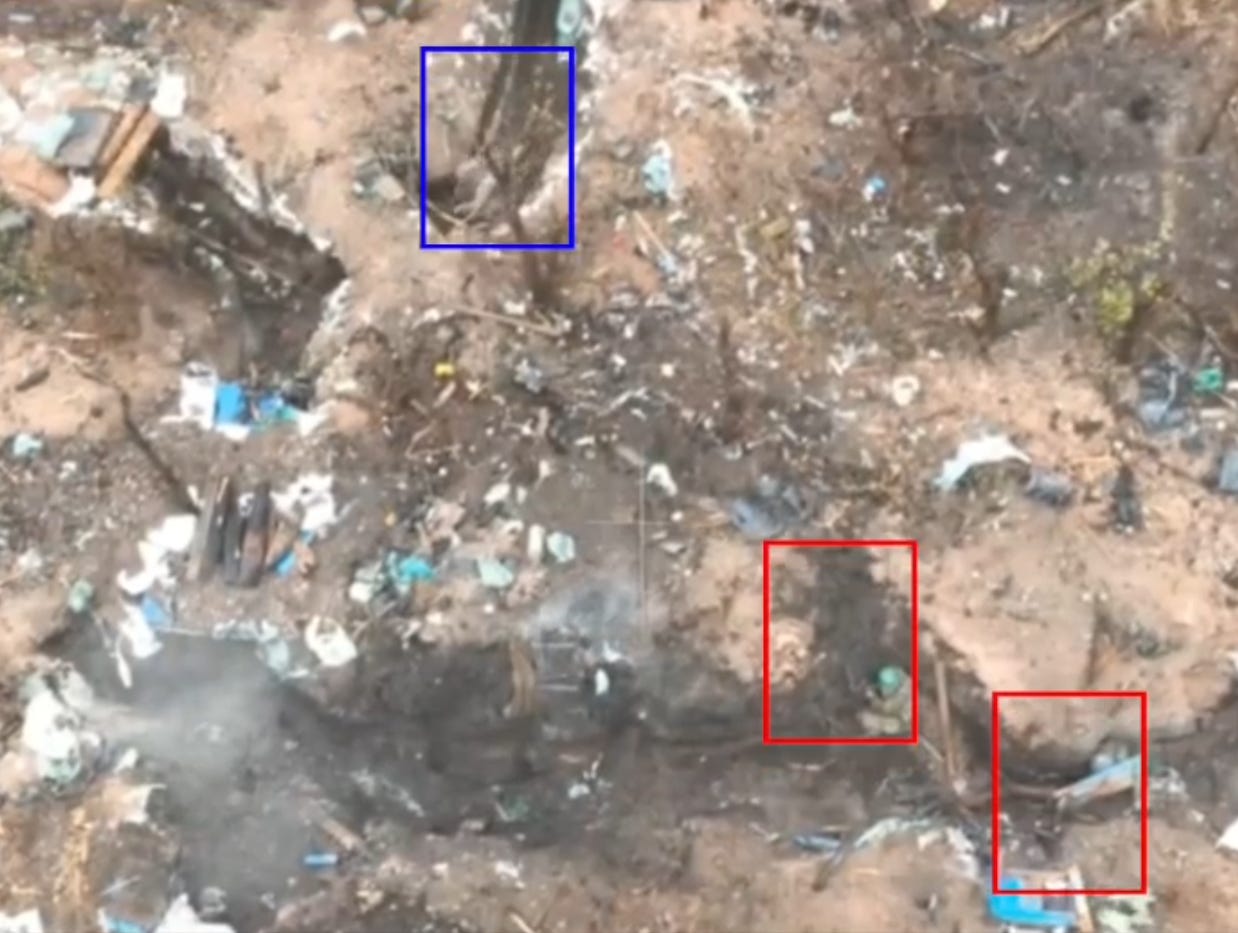 Vostok-V (in red) storming a trench held by Ukrainian infantry (in blue)