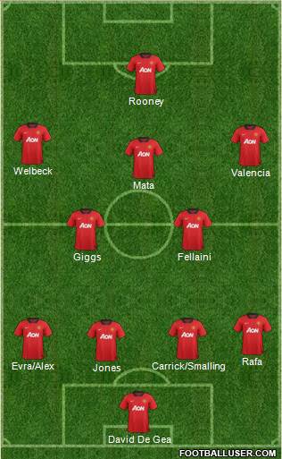 не знам до каде е Смолинг затоа го пишав мајкл позади , гигси е одморен сеа и може да игра , велбекот повеќе ке може да се враќа во одбрана од кагава. На Фелаини работа ке му биде да го стопира Туре , евра не знам дали е спремен за вечер ,а и Бутнер добар беше против ВХУ.