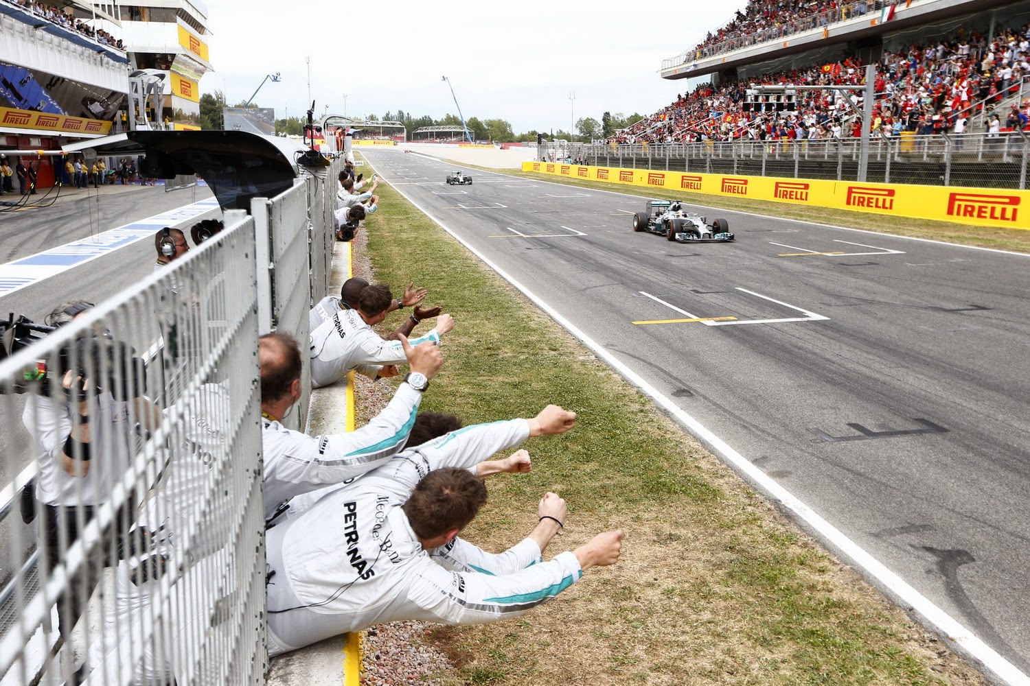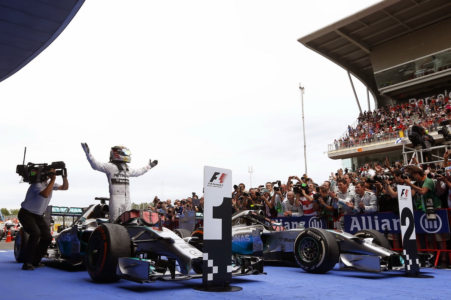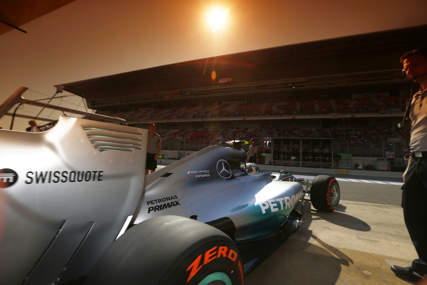 Луис Хамилтон го забележа најбрзото време на првата тренинг сесија за Шпанското ГП. Тој беше 0,868 секунди побрз од Мекларенот на Џенсон Батон и речиси секунда пред Даниел Рикиардо на патеката во Барселона. Нико Розберг само со 5-тото најбрзо време, но мора да кажеме дека не беше заинтересиран за поставување на брзо време, бидејќи ако сакаше лесно ќе поставеше време во близина на својот тимски колега. Малиот број кругови и претпазливоста на тимот со болидот на Нико Розберг била како последица на потенцијални проблеми со ЕРС-системот.