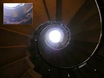arcus sent us this cool ghost picture of a man or the apparition of a man on a spiral staircase. What adds validity is the fact that Marcus "cleared" the stairs prior to snapping the ghost image: