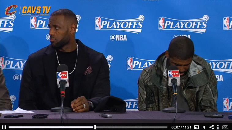 'It looks like Kevin Love is lawyer of Kyrie who's accused of selling drugs in school and even in the court he is high, and LeBron is Kyrie's father.'